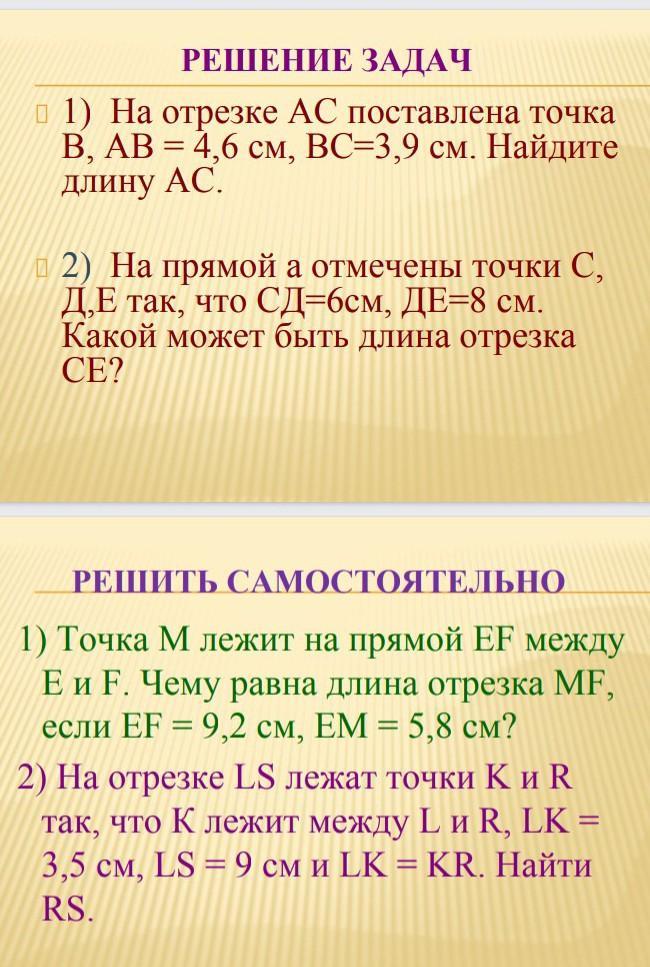3) чтобы узнать часть отрезка нам надо из общей суммы вычесть известную часть, то есть ЕF-EM=9,2-5,8=3,4cm