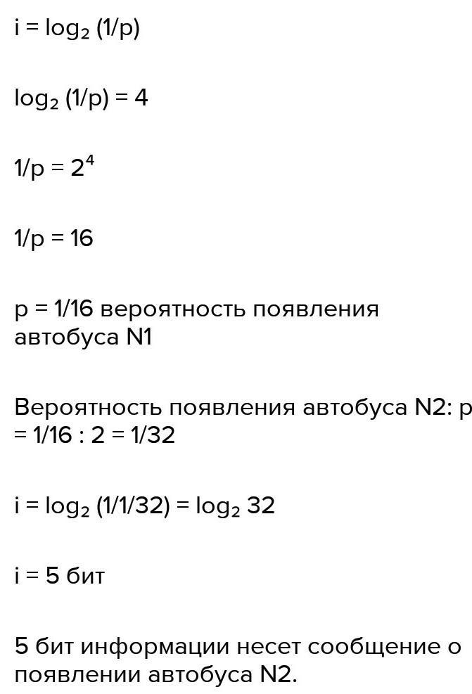 появления автобуса № 1. сколько информации несет сообщение о появлении