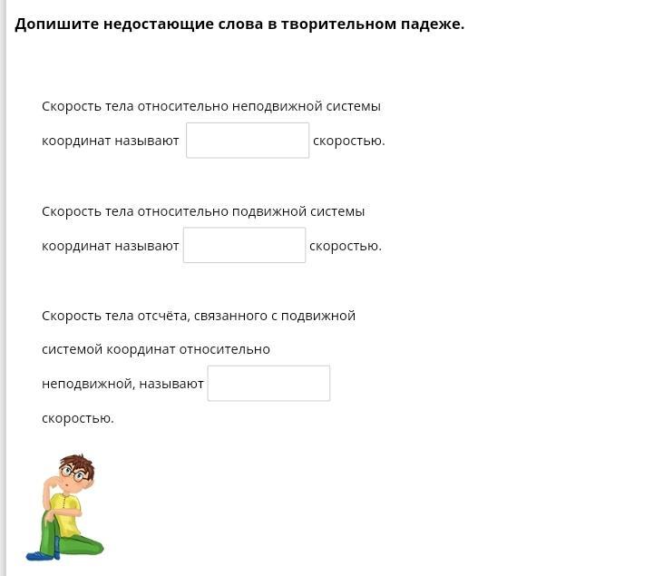 1.Скорость тела в неподвижной системе отсчета равна векторной сумме его скорости относительно движущейся системы и скорости движущейся системы относительно неподвижной. Это утверждение называют законом сложения скоростей