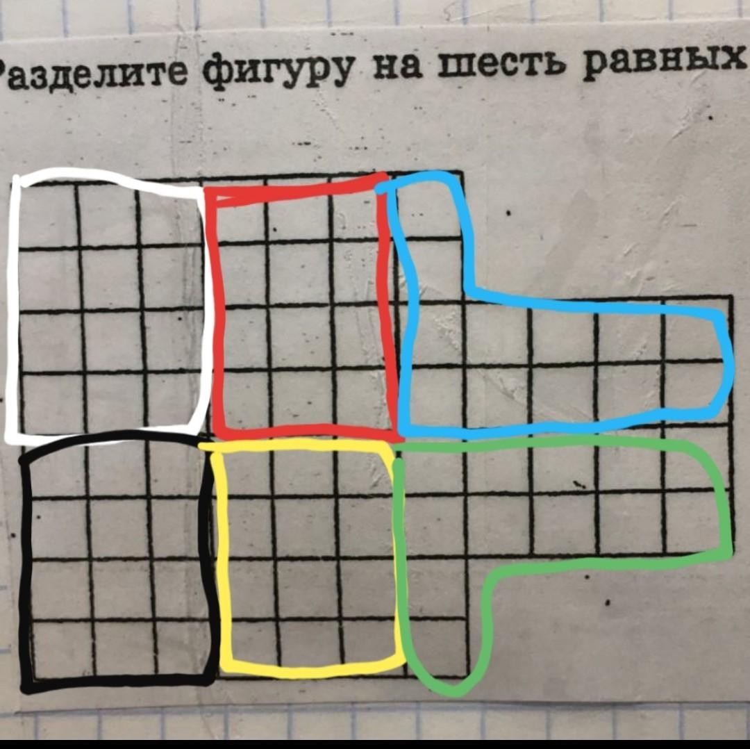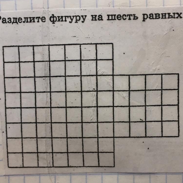 Найдем площадь 7*8+4*4=72. Поделим на 6. 72:6=12. По 12 клеток будут равные фигуры.