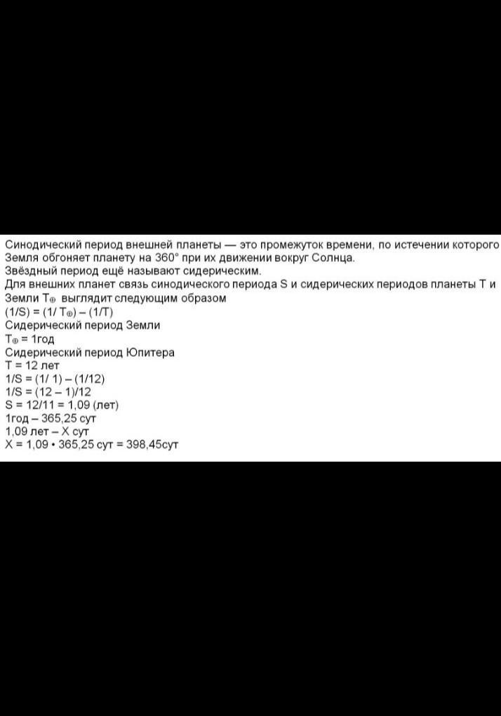 Чему равен звездный период обращения юпитера если его синодический период равен 400 суток?