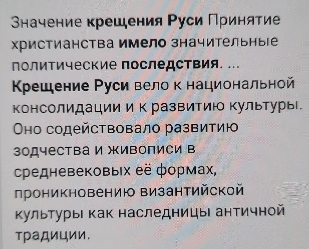 Крещение Руси-оно помогло формированию единой русской нации. Православие стало частью национальной культуры.