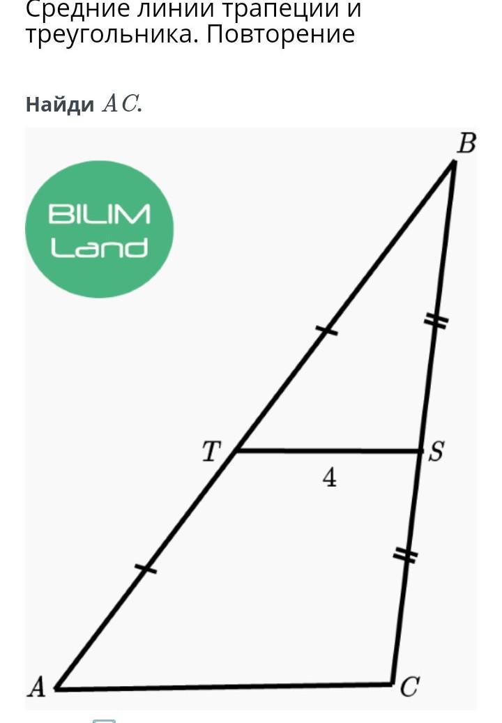 1. Средняя линия TS║AC. Параллельна одной из сторон.