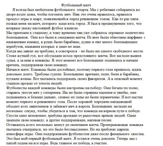 Развязка. Это был мой первый футбольный матч. Я остался очень доволен. Теперь мы с папой ходим на все игры. Ведь главное не победа, а участие.