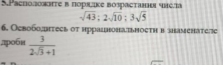 6) 3/(2V3+1) =3(2V3-1) /(2V3+1)(2V3-1) =(6V3-3) /(4*3-1)=(6V3-1) /11
