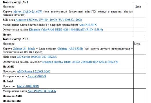 Определите, для каких целей был куплен компьютер по конфигурации и определите среднюю стоимость такого компьютера по сайтам магазинов компьютерной техники.