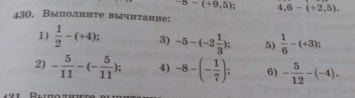1.1/2-4=-3 1/2; 2) -5/11+5/11=0; 3. -5+2 1/3=-2 2/3; -8+1/7=-7 6/7; 5. 1/6-3=-2 5/6;