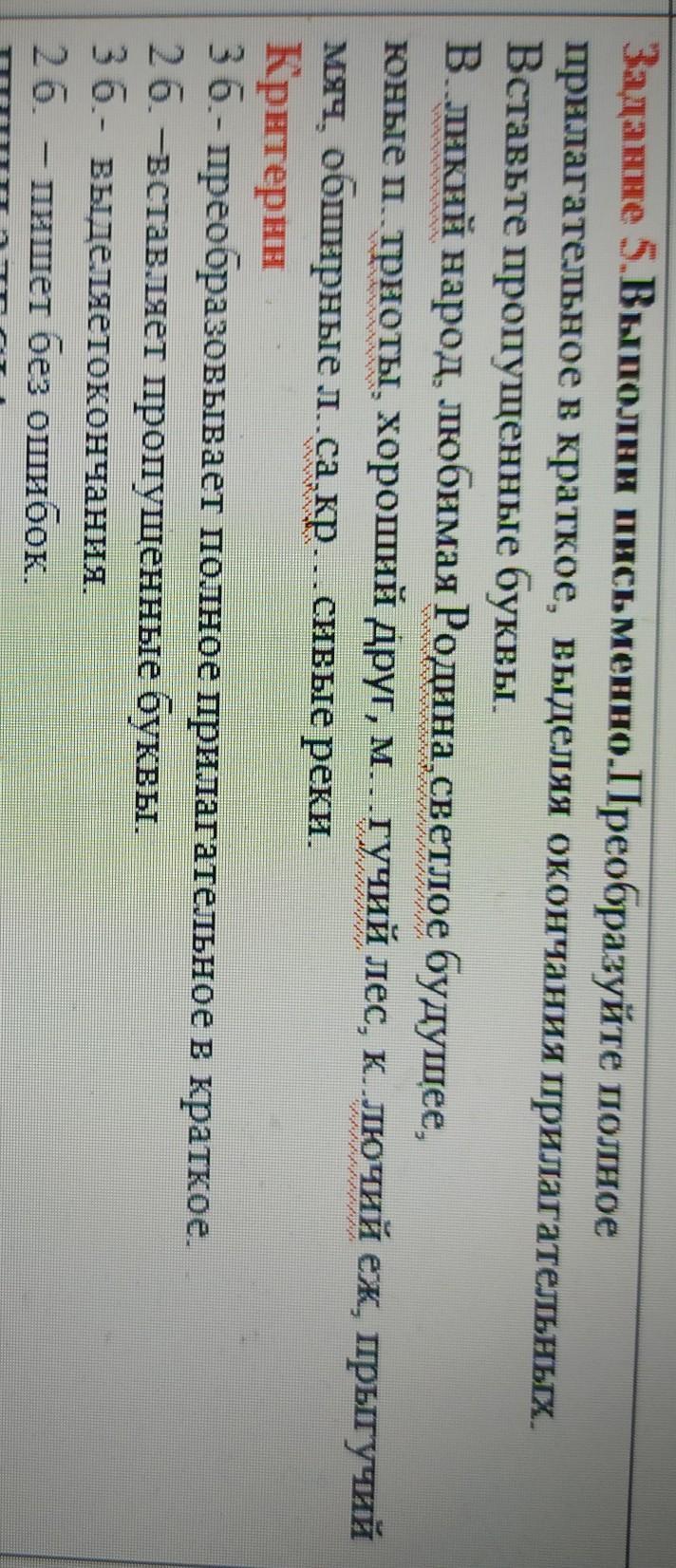 Велик(ий) народ, любим(ая) Родина, светл(ое) будущее, юн(ые) патриоты, хорош(ий) друг, могуч(ий) лес, колюч(ий) еж, прыгуч(ий) мяч, обширн(ые) леса, красив(ые) реки.