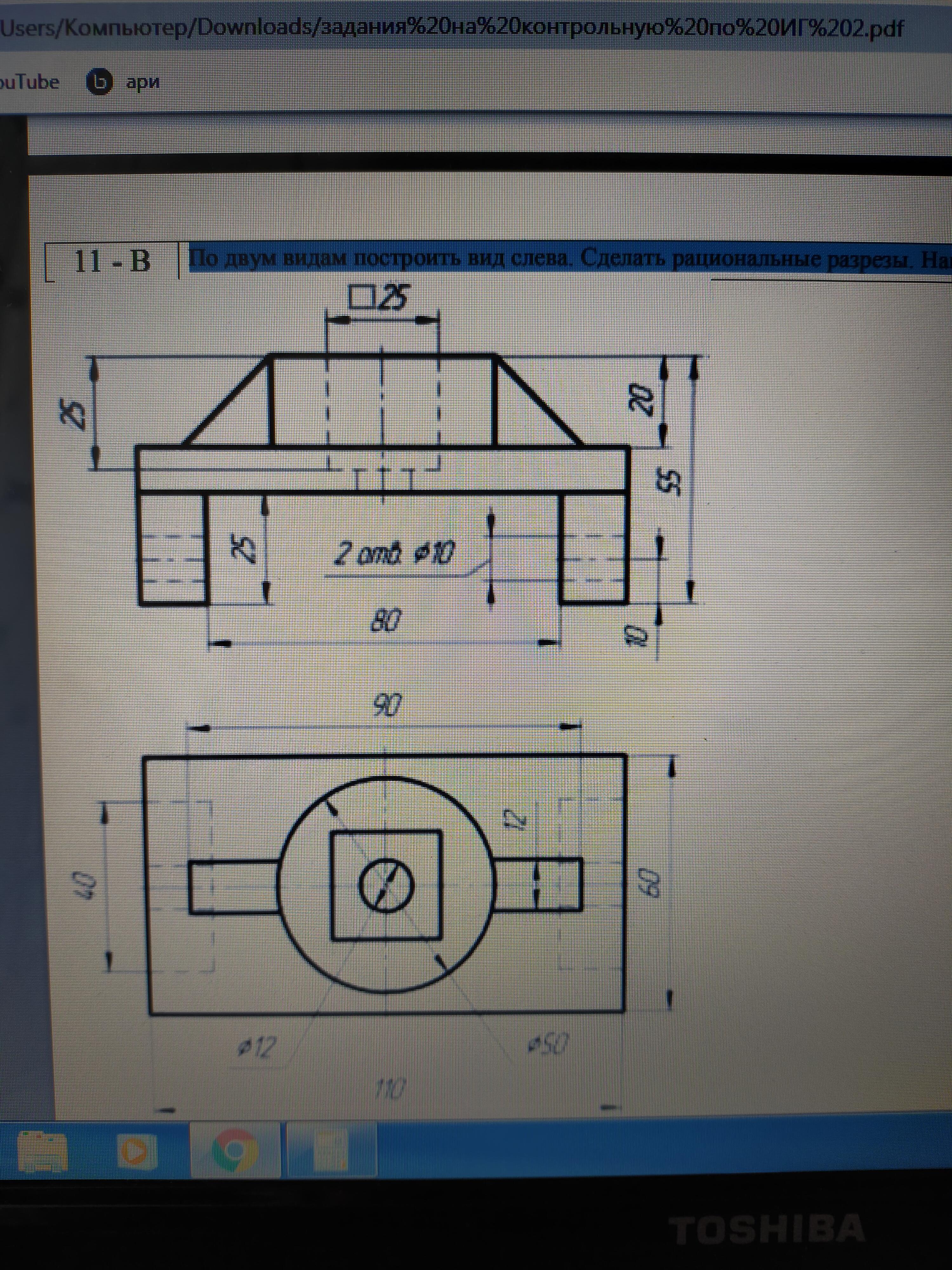 ЧЕРЕЧЕНИЕ Прошу, помогите срочно, даю максимум баллов, нужно По двум видам построить вид слева, сделать рациональные разрезы нанести размеры.