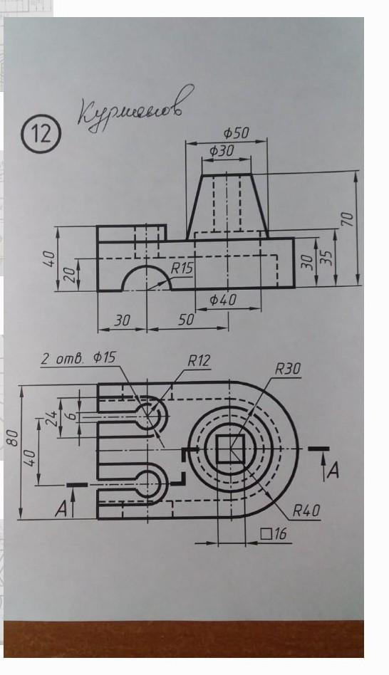Вид сверху оставляете без изменения, а вот главный вид (спереди) заменяете ступенчатым разрезом А-А.