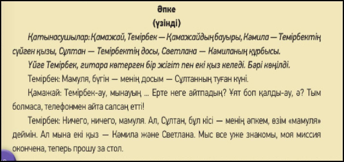 1) Үзіндіде неше кейіпкер бар?2) Үзіндіні оқып, Қамажайдың образын толық ашуға бола ма?3) Қамажайдың сөзінен оның қандай адам екенін байқауға болады? Плииииз