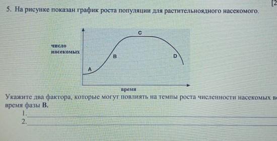 5. На рисунке показан график роста популяцин для растительноядного насекомого.