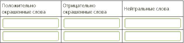 Определи, к какой категории относятся эмоционально окрашенные слова, данные в списке. Впиши их в поле ввода.