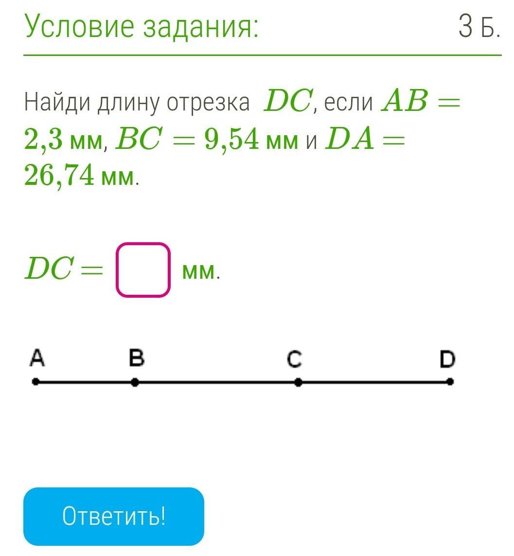 DC=AD-AB-BC=26,74-2,3-9,54=14,9мм