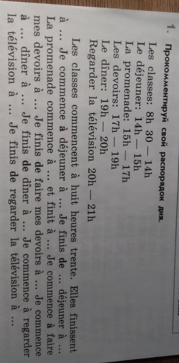 8:30. Elles finissent à 14:00. Je commence à déjeuner à 14h. Je finis de dejeuner à15h. La promenade commence à 15 et finit à 17h. Je commence à faire mes devoirs à 17. Je finis de faire mes devoirs à19h. Je commence à diner à 19h. Je finis de diner à 20h. Je commence à regarder la television à 20. Je finis de regarder la tele à 21.