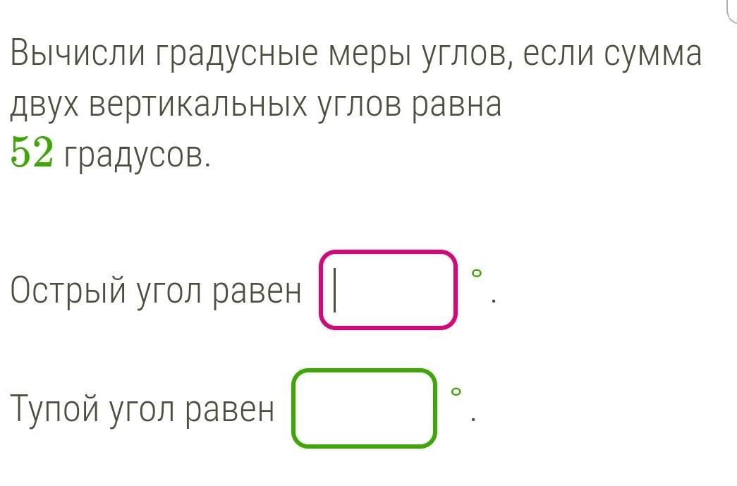 Вертикальные углы равны между собой. Найдем один из этих углов.