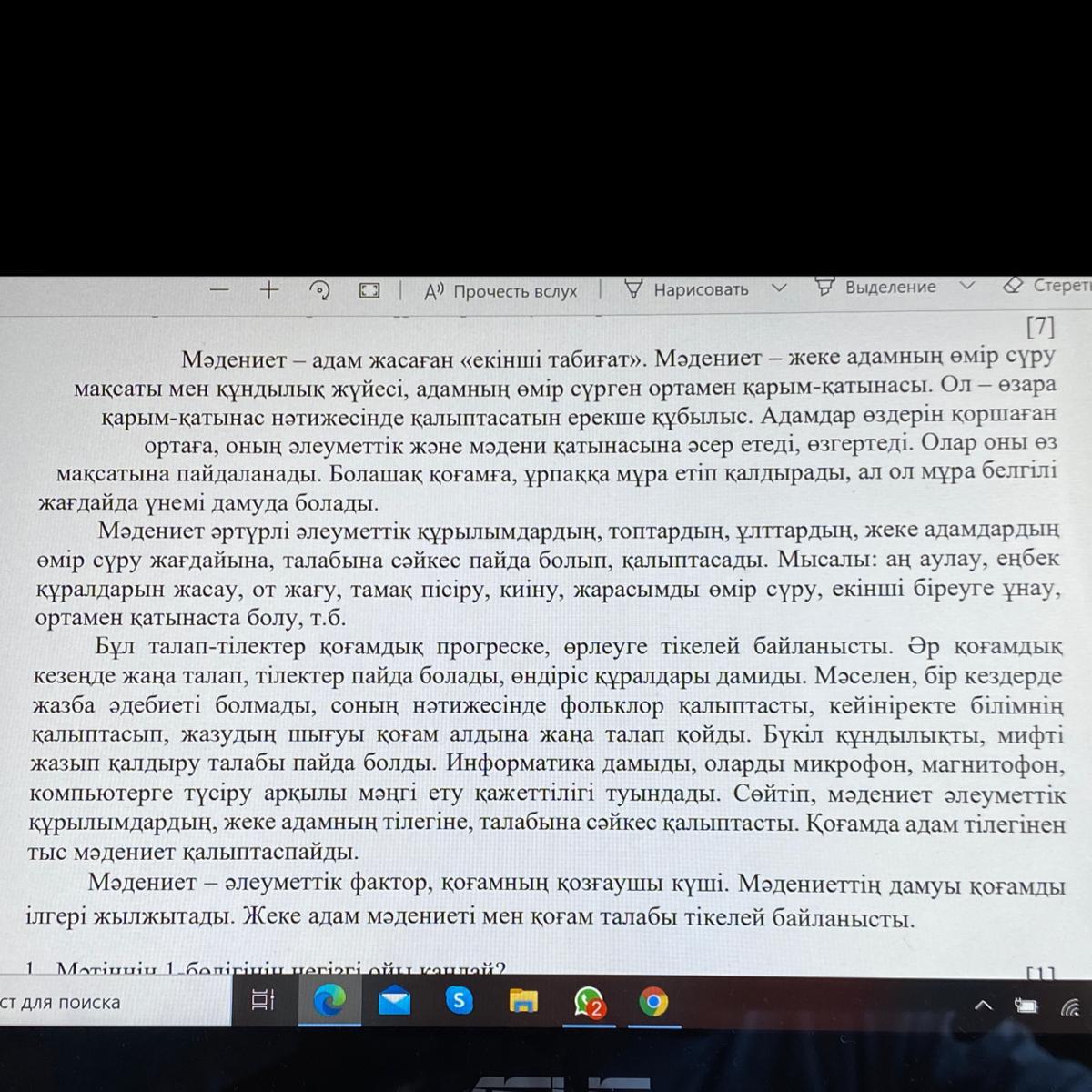 7.Мәтінге қатысты өз ойыңызды білдіріңіз. Тақырыпты ескеріңіз және тұжырым жасаңыз.
