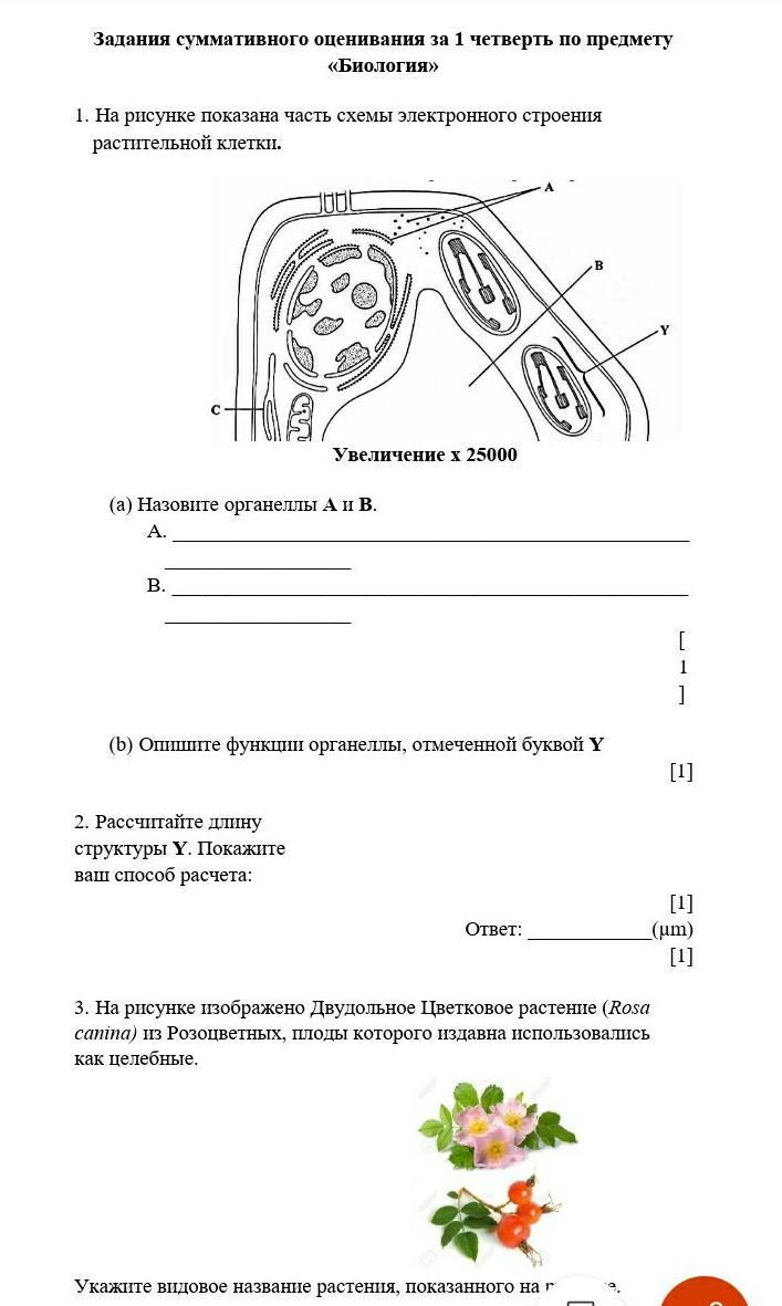 (b) Опишите функции органеллы, отмеченной буквой Ү