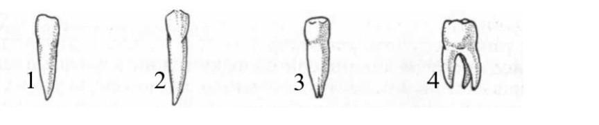 12. (а) На рисунке ниже представлены различные типы зубов. Определи клыки.
