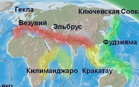 Используя физическую карту. найдите действующие вулканы: Везувий, Руис, Ключевская Сопка, Кракатау, Этна, Фудзияма.