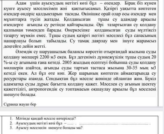 2) Ауызсудың негізгі көзі бұл- өзендер ( бірінші сөйлем)