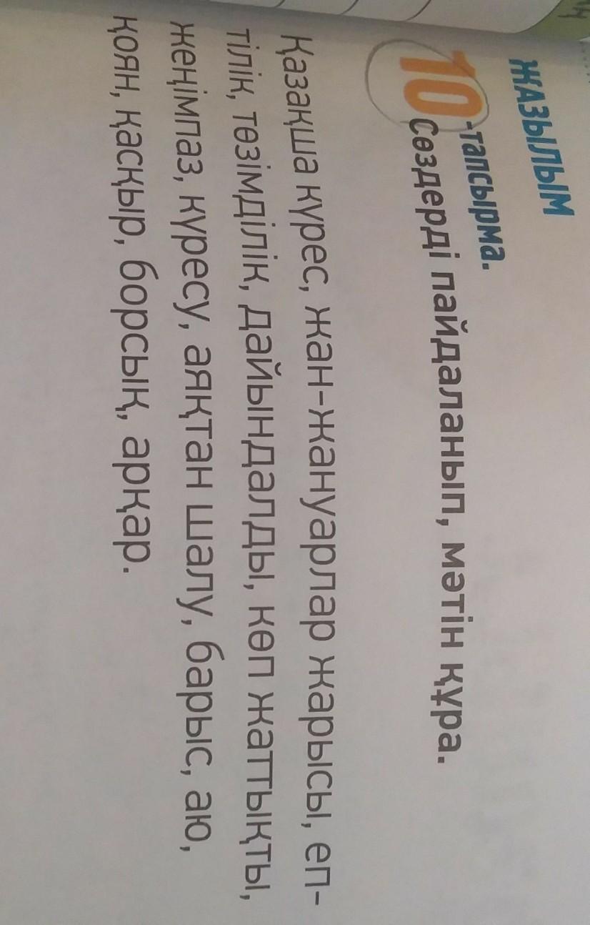 10-тапсырма,65 бет.Сөздерді пайдаланып,мәтін құра.