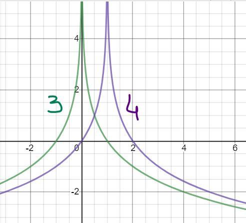 Четвертый график получается параллельным сдвигом на единицу вправо относительно оси Ox (так как из аргумента x вычитается 1), вертикальной ассимптотой становится прямая x=1 - смотри рисунок.