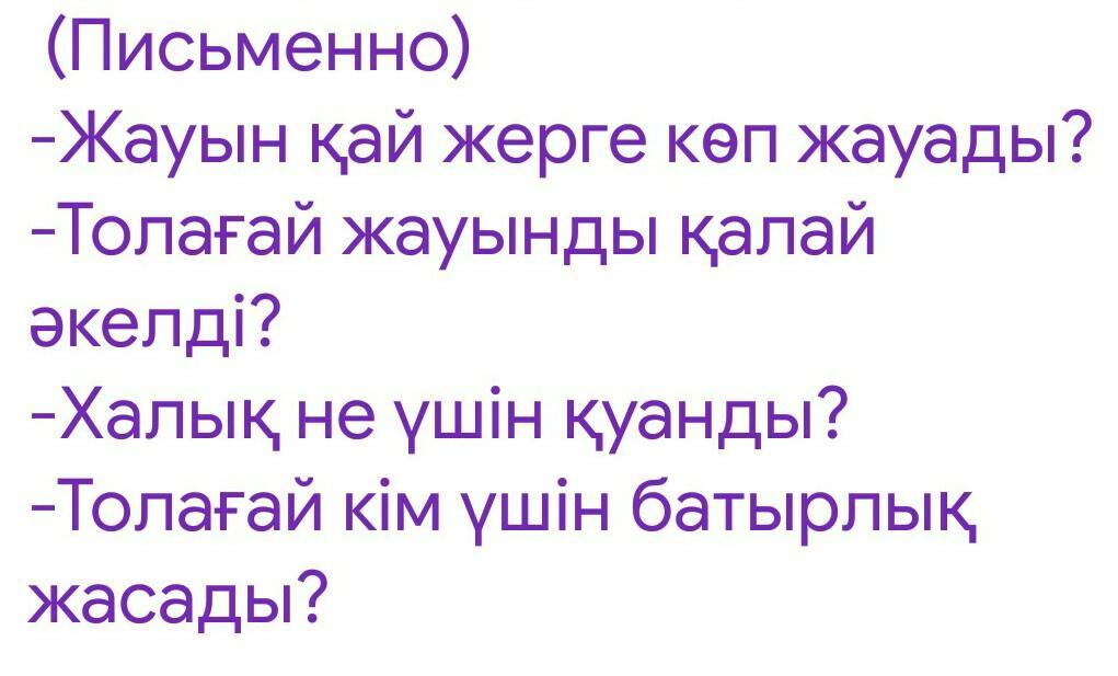 ОТВЕТЬТЕ НА ВОПРОСЫ ПОЖАЛУЙСТА НА КАЗАХСКОМ И С ПЕРЕВОДОМ ЧТО ВЫ НАПИСАЛИ И КАК ОТВЕТИЛИ ДАЮ 20 БАЛЛОВ