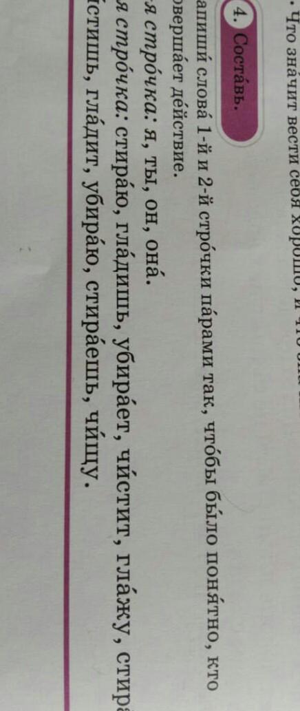 я стираю, ты гладишь он убирает она чистит я глажу она стирает ты чистишь она гладит я убираю ты стираешь я чищу