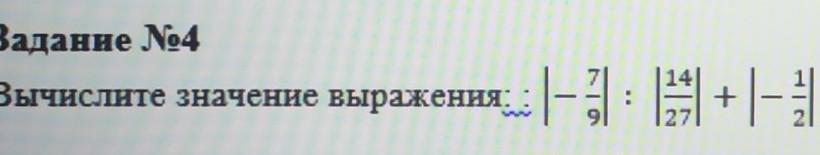 |-7/9| : |14/27| + |-1/2| = 7/9 : 14/27 + 1/2 = 7/9 * 27/14 + 1/2 = 3/2 + 1/2 = 4/2 = 2
