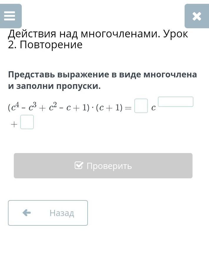 (c⁴ - c³ + c² - c + 1) ∙ (c + 1) = c⁵ + c⁴ - c⁴ - c³ + c³ + c² - c² - с + c + 1 = c⁵ + 1.