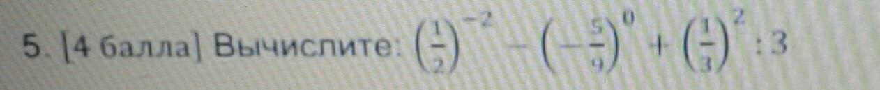 (1/2)⁻² -(- 5/9)⁰ +(1/3)²:3=