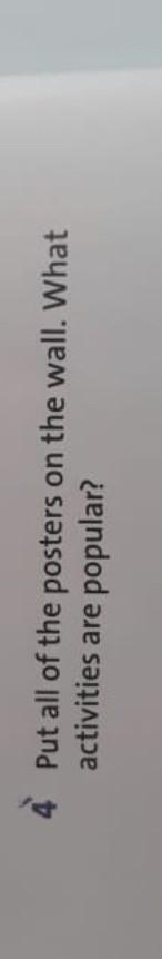 Put al of the posters on the wall. What activities are popular?Пжжж помагитееее