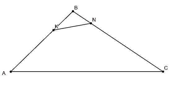 Так как и угол B у треугольников BKN и ABC общий, то ΔABC ~ ΔBKN по двум пропорциональным сторонам и углу между ними. Из подобия треугольников следует пропорциональность соответствующих сторон