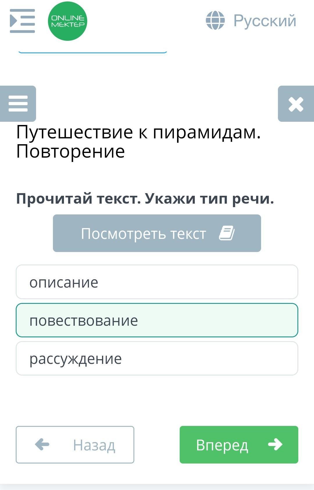 Прочитай текст. Укажи тип речи.