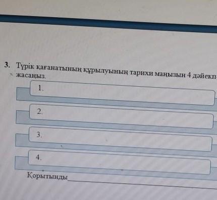3. Түрік қағанатының құрылуының тарихи маңызын 4 дәйекпен беріп , қорытынды жасаныз. ПЖ ПОМОГИТЕ У МЕНЯ ТЖБ!!!
