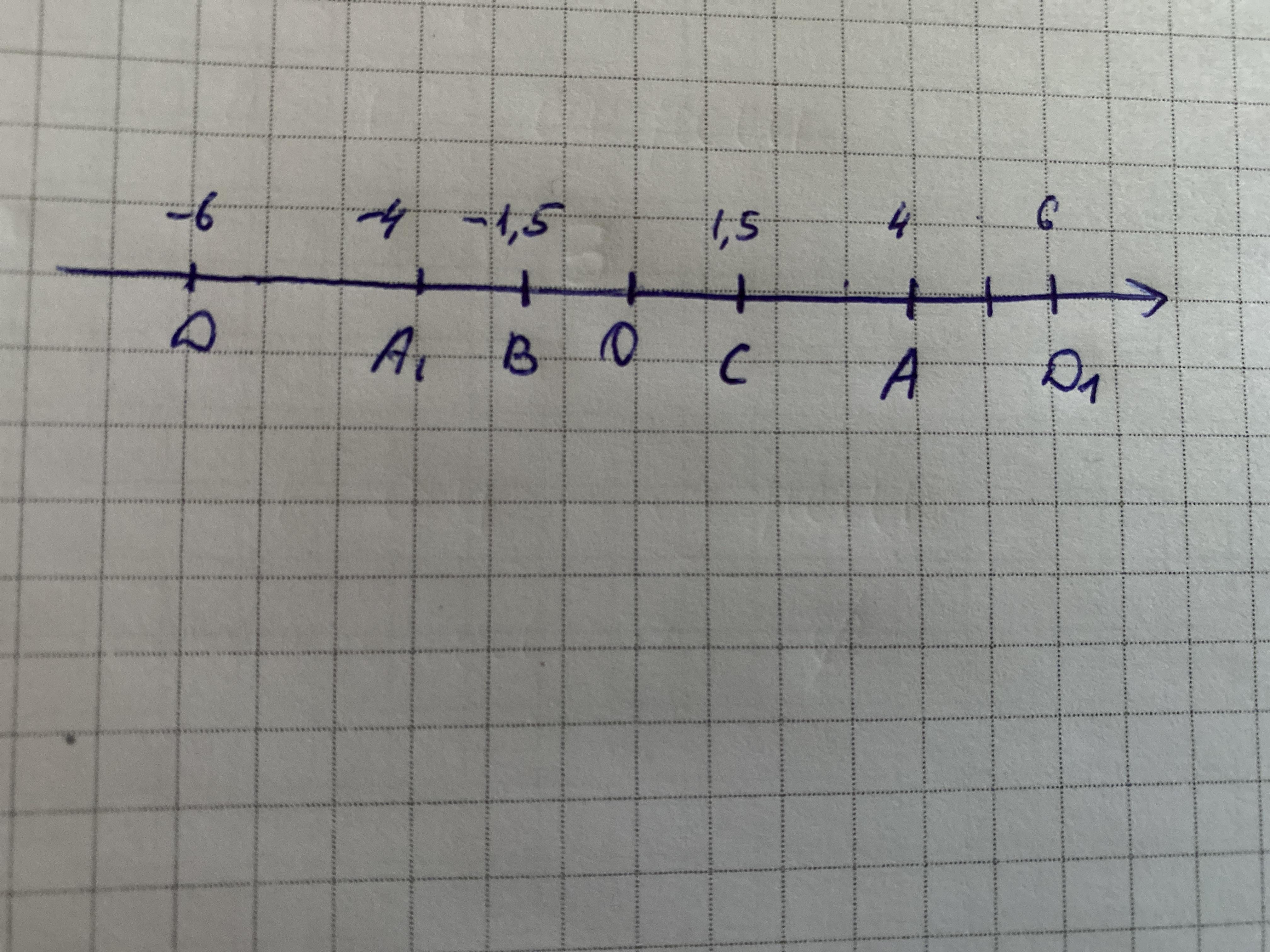 4. а) На координатной прямой отметьте точки А(4), В(-1,5), С(1,5), D(-6).