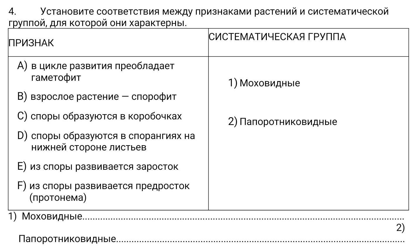 Установите соответствия между признаками растений и систематической группой, для которой они характерны.