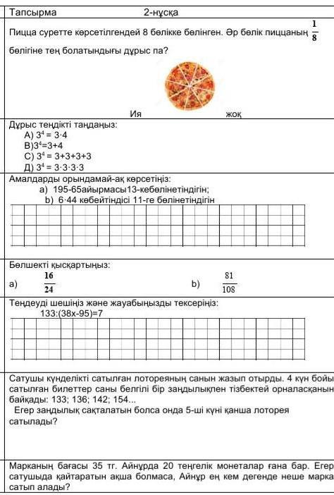 2.Д болад 3.а)(195-65): 13=10. b)(6•44): 11=24