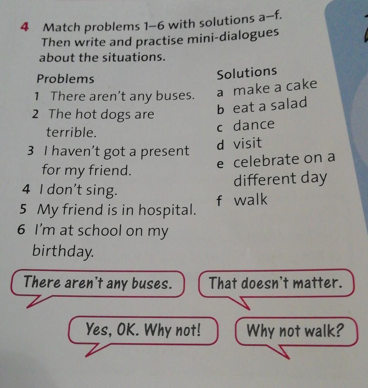 Нужно соотнести проблемы под номерами с решениями под буквами.
