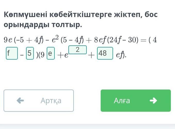 9e (–5 + 4f) – e2 (5 – 4f) + 8ef (24f – 30) = ( 4–)(9