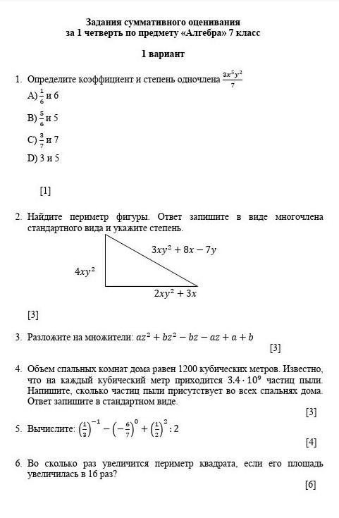 1) Коэффициент одночлена - это дробь перед переменными, в данном случае 3/7, а степень одночлена - это сумма степеней переменных, в данном примере 5+2, значит, 7.