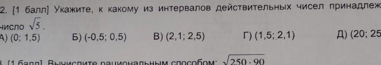 укажите к какому из интервалов действительных чисел принадлежит число корень из 5 срочно пожалуйста