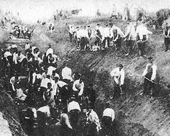 они строились грязно в ручную работалимужчины и женщины