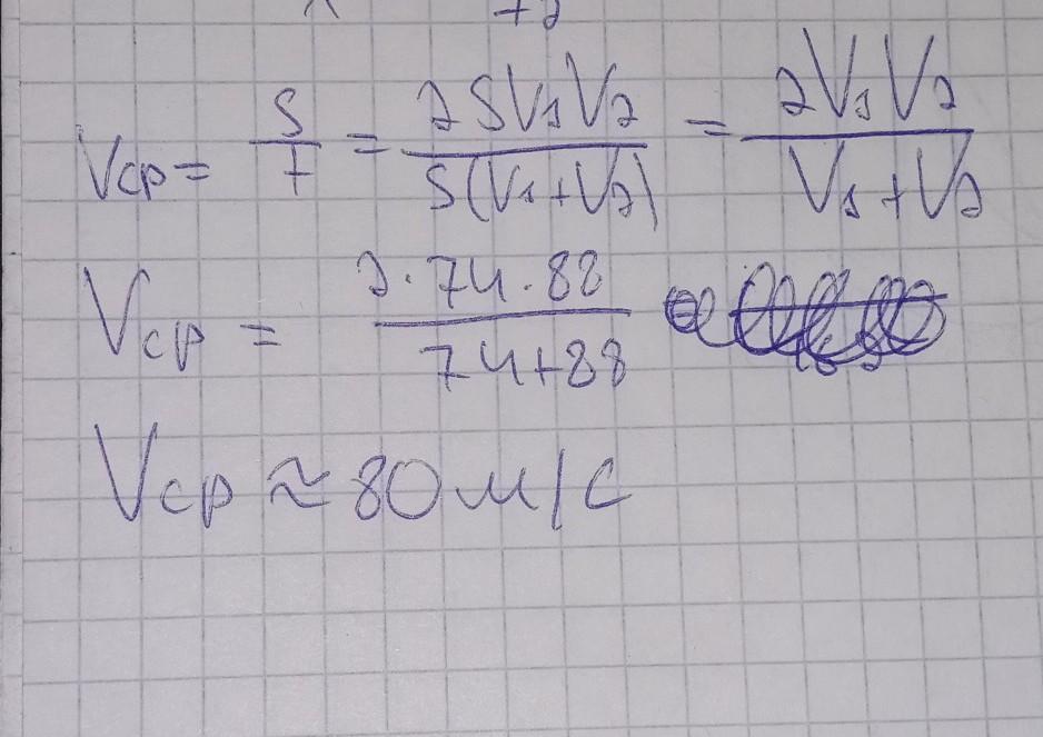 ПОМОГИТЕ ПЖ ПРОШУУУ ДОБРЫЕ ЛЮДИИИИ Мотоциклист едет первую половину пути со скоростью 88 км/ч, а вторую половину пути — со скоростью 74 км/ч. Найди среднюю скорость мотоцикла на всём пути. Ответ округли до единиц.