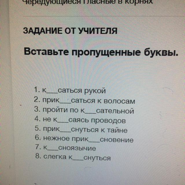 Нужно отличать корни с чередованием кас – кос от омонимичных корней (коса, косить, косо, искоса).
