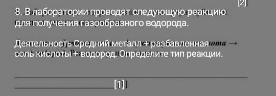 Деятельность средний металл + разбавленная кислота---> соль + водород . Определите тип реакции.