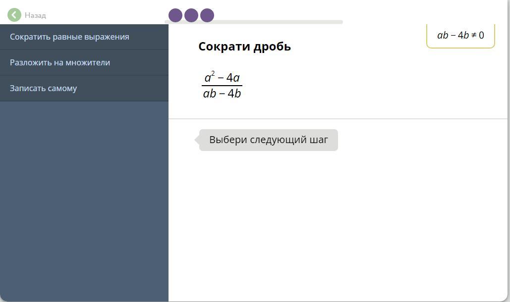 (а^2- 4а) : (аb-4b)=(a(a-4)) : (b(a-4))=a/b