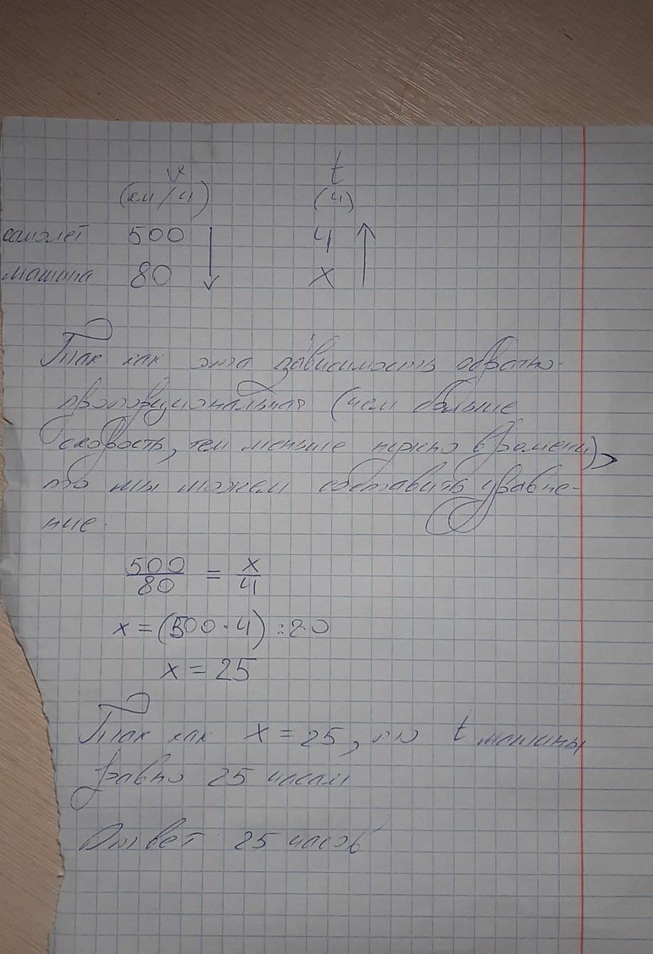 Средняя скорость самолёта 500 км/ч, а машины 80 км/ч.