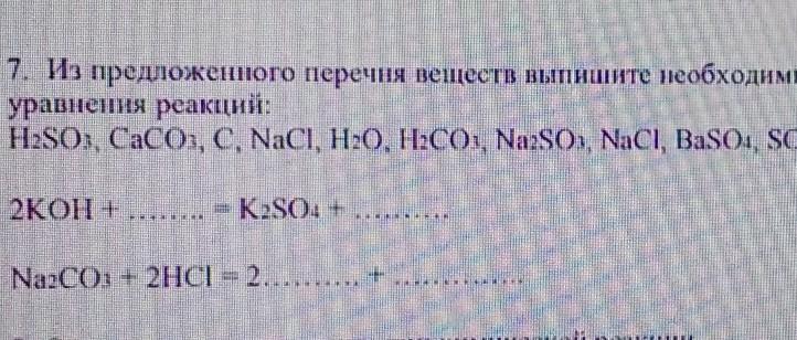 из предложенного перечня веществ выпишите необходимые формулы и закончите уравнения рекаций